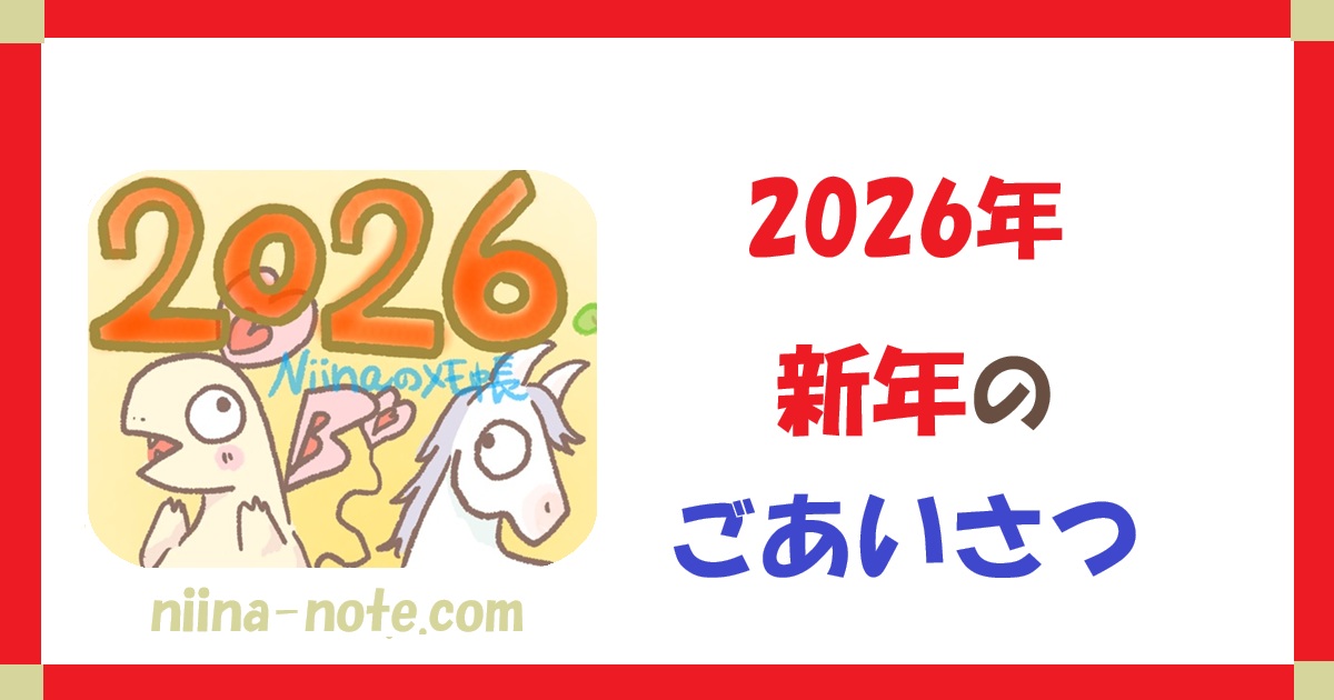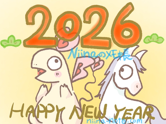 2026年、新年のごあいさつ! ※当サイトにはプロモーションが含まれています ブログのこと 2026.01.01 「Niinaのメモ帳」管理人のNiinaです。 2026年になりました。 あけましておめでとうございます! 今年は午年! 当サイトの2025年を振り返りますと、スローな更新ペースになってしまったなあとしか言いようがありません(毎年言ってますね…)。書きたい記事はたくさんあるのですが…。 今年3月には、開設6年目となる当サイト。少しずつペースを上げていければと思っております。 2026年も「Niinaのメモ帳」をよろしくお願いいたします。