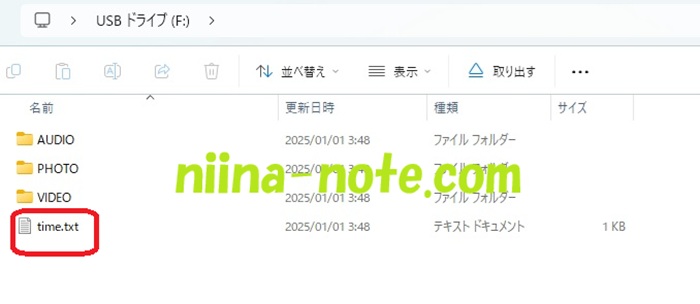 「time.txt」というテキストファイルがあるので、開いて時刻を設定します。